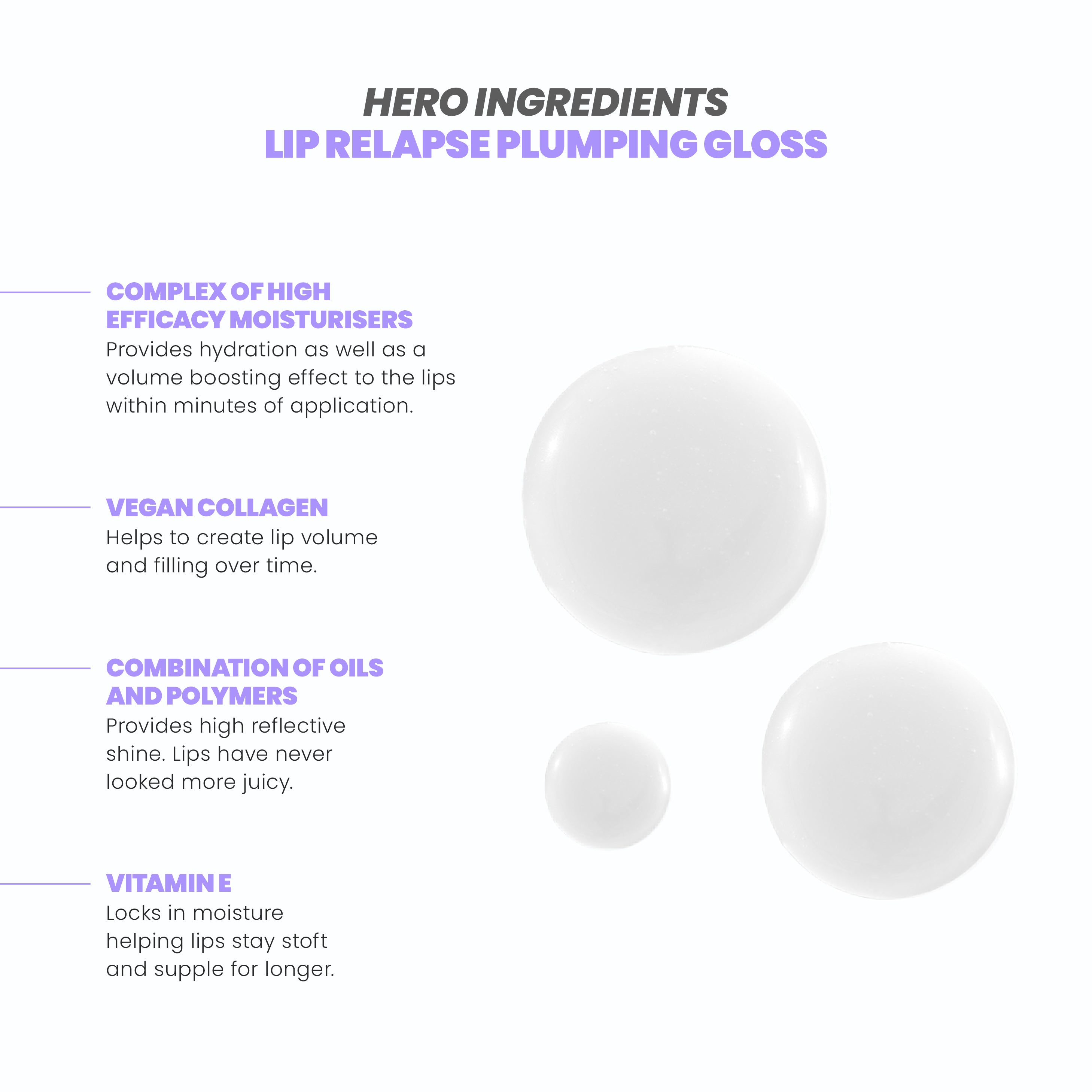 - Combination of oils and polymers which provide high refractive shine making lips look instantly plumper and fuller